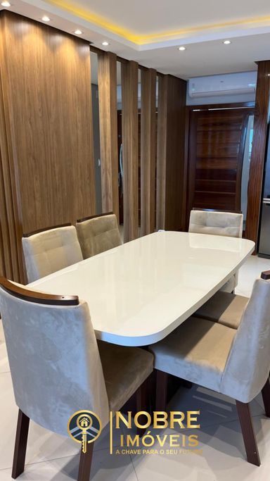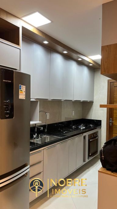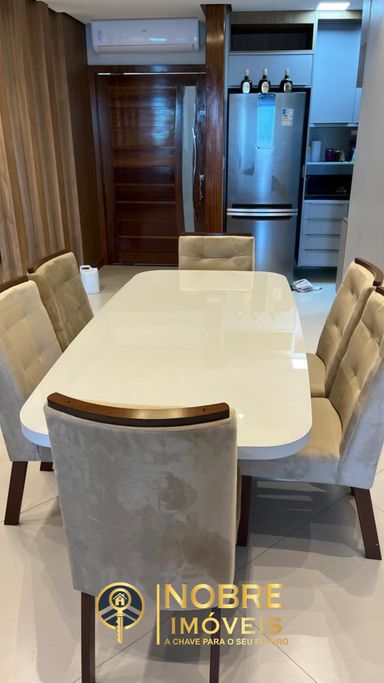 Mobiliário completo: geladeira, fogão, armários planejados, mesa de jantar e muito mais